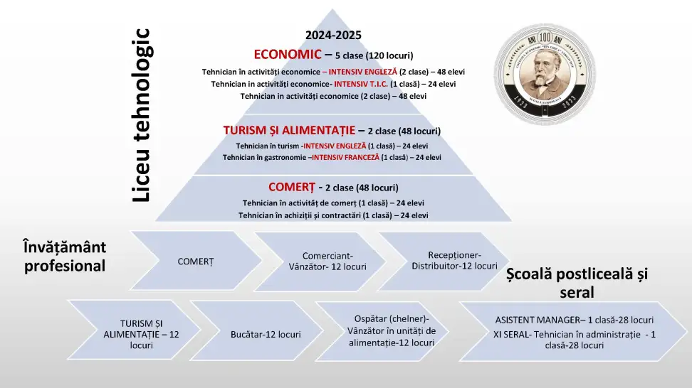 Școală europeană/ 100 de ani de învățământ economicColegiul Economic „Ion Ghica„ Târgoviște OFERTA DE ȘCOLARIZARE